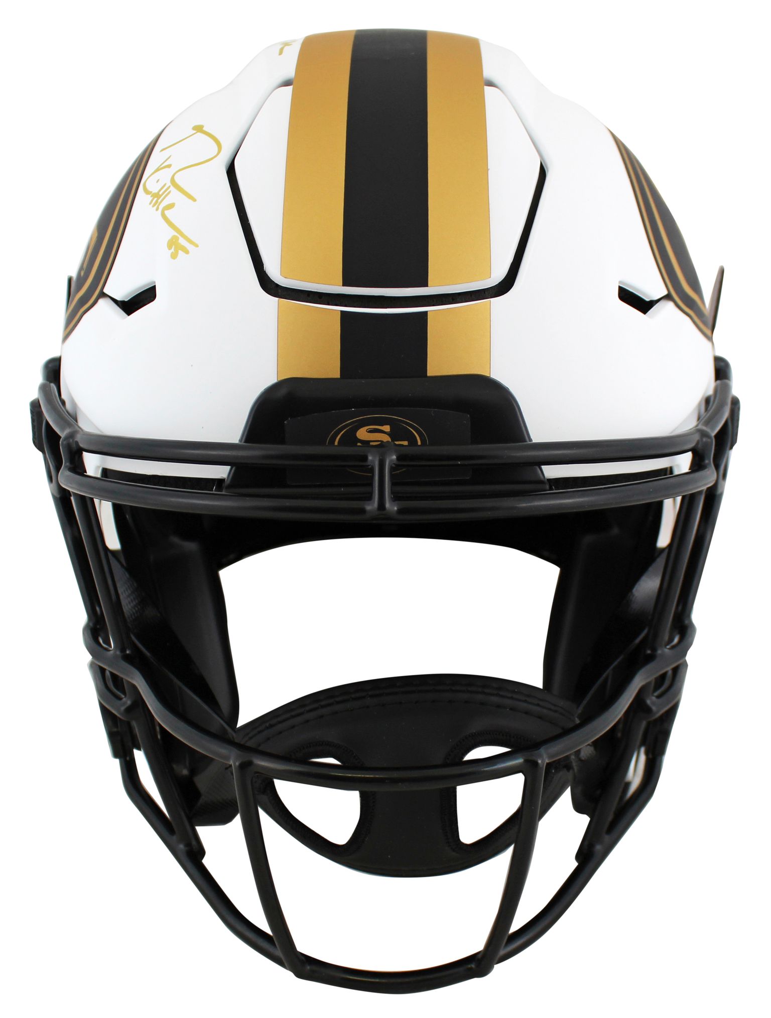 Riddell San Francisco 49ers full-size authentic on-field lunar eclipse alternate SpeedFlex helmet has been hand-signed and inscribed by George Kittle.