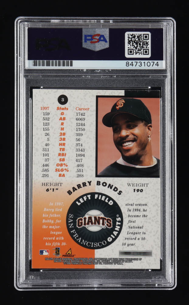 Barry Bonds Signed 1998 Pinnacle Mint Bronze #3 (PSA)