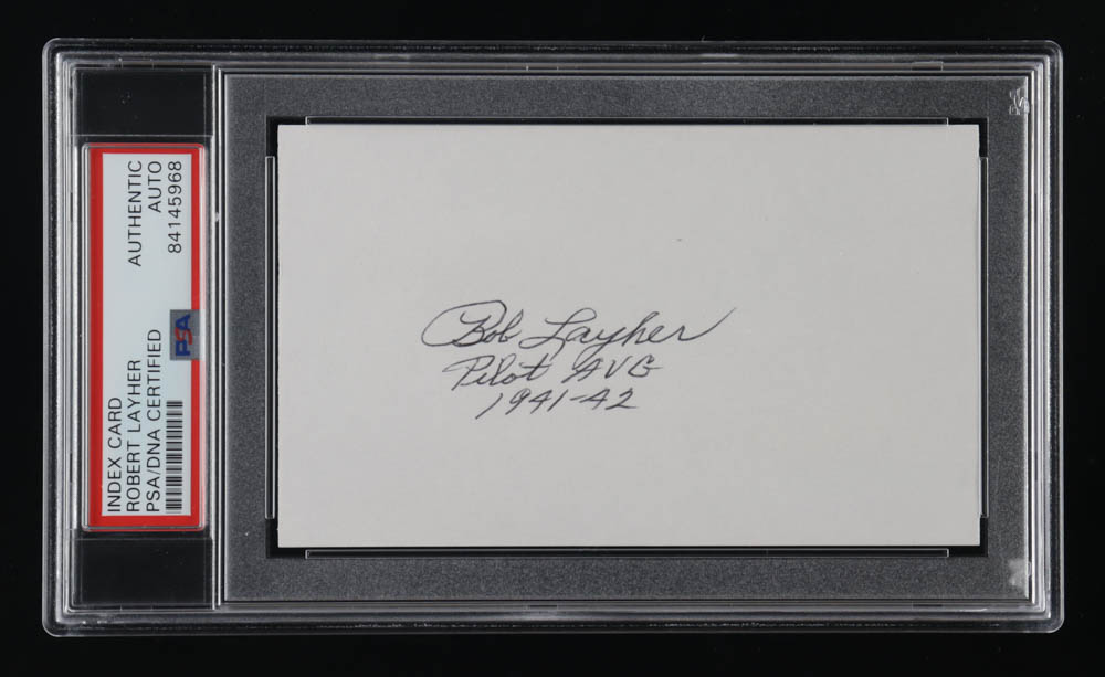 Robert Layher Signed Index Card Inscribed "Pilot AVG 1941-42" (PSA)