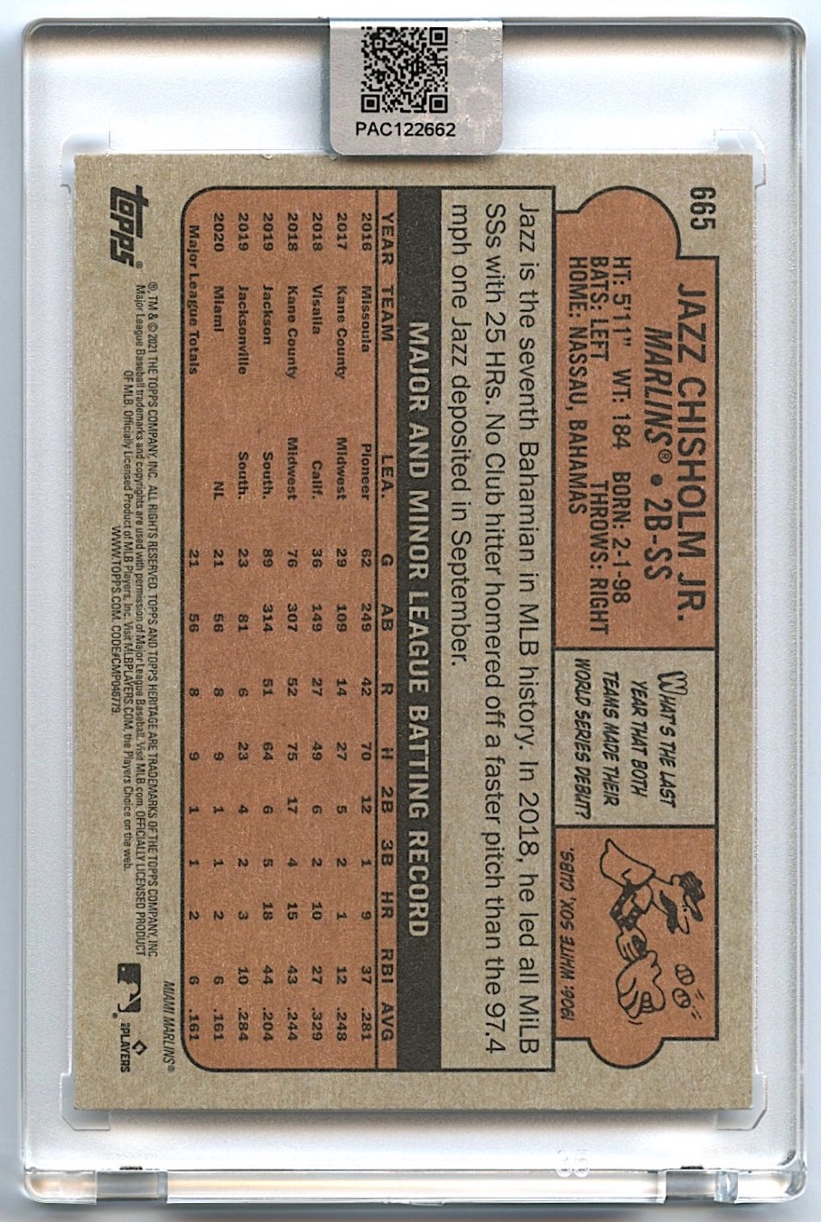 Jazz Chisholm Jr. Signed 2021 Topps Heritage #665 RC (PA Encapsulated)