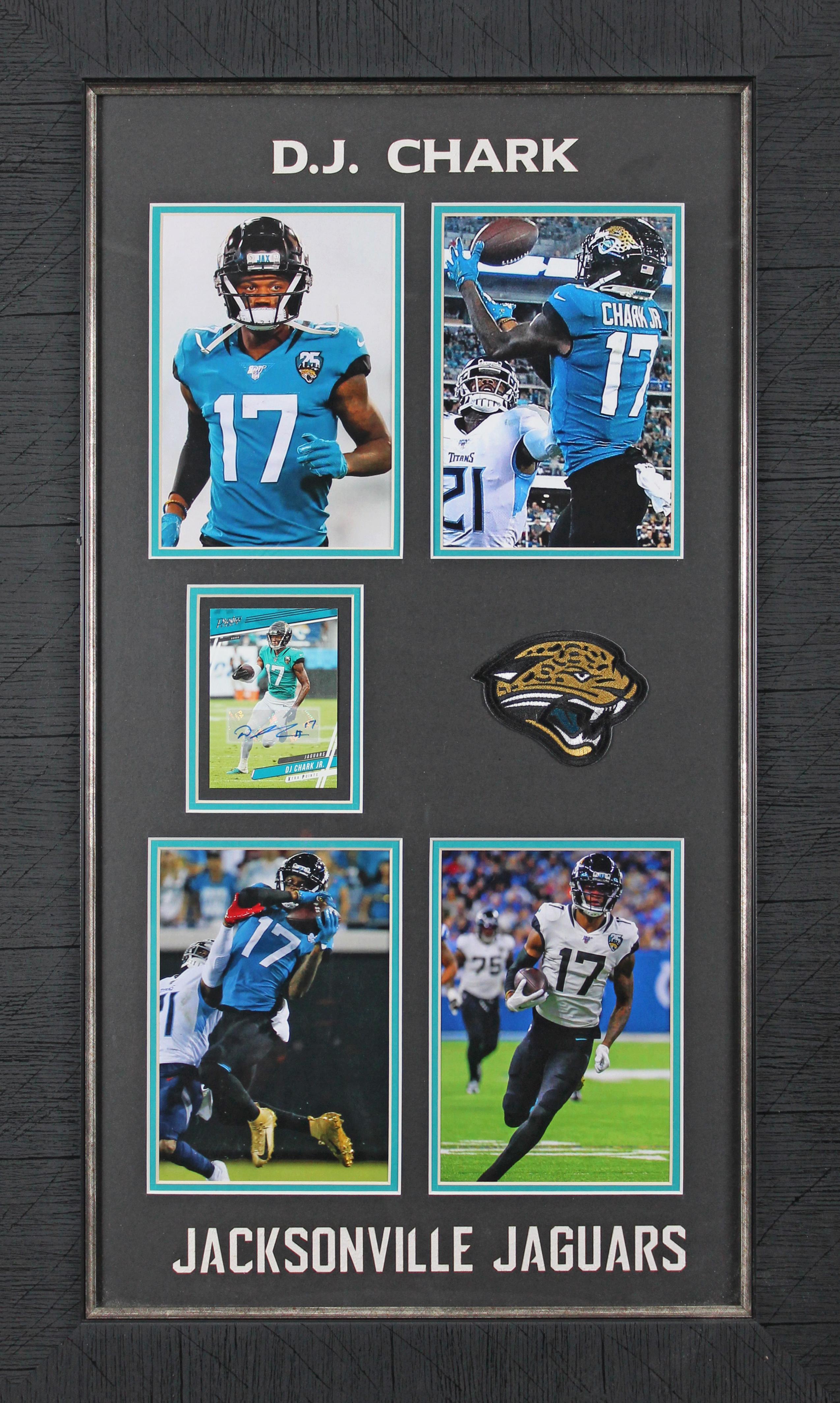 Custom frame measures approximately 16.5" x 27.5" in size and features a card of D. J. Chark (Jacksonville Jaguars) and (4) 5" x 7" photos.