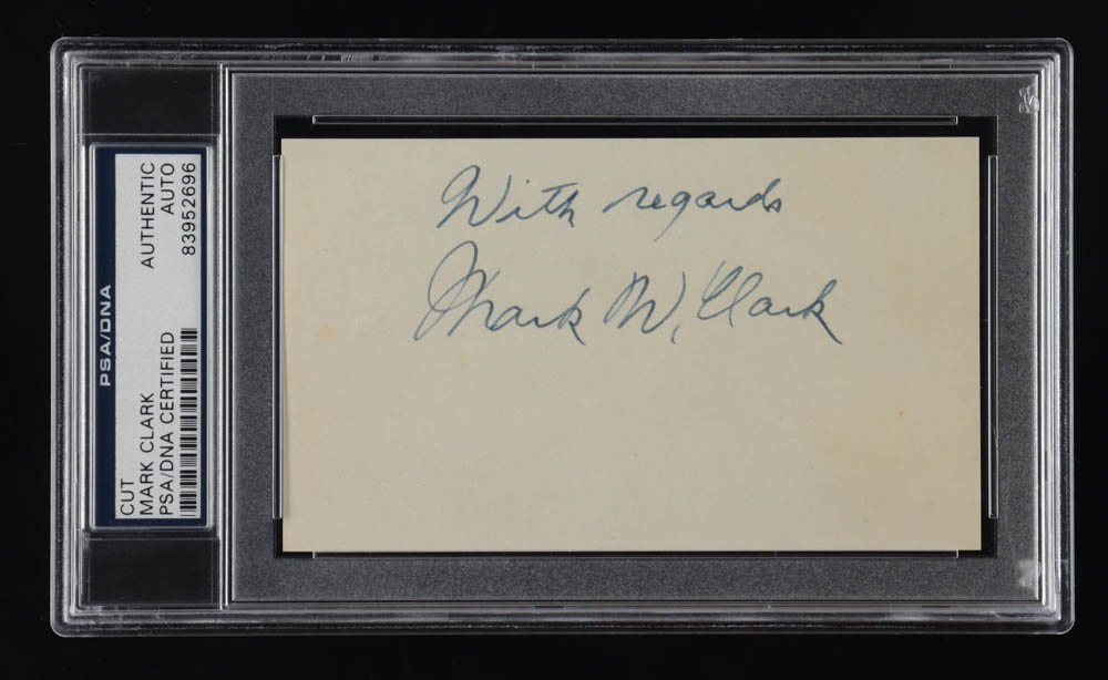 General Mark W. Clark Signed 3x5 Cut Inscribed "With Regards" (PSA)