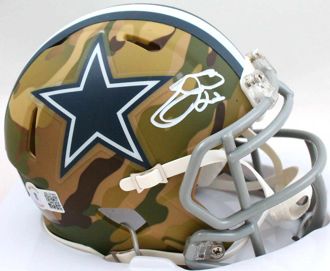 Riddell Dallas Cowboys Camo Alternate Speed mini helmet. Hand-signed by Emmitt Smith (HOF).