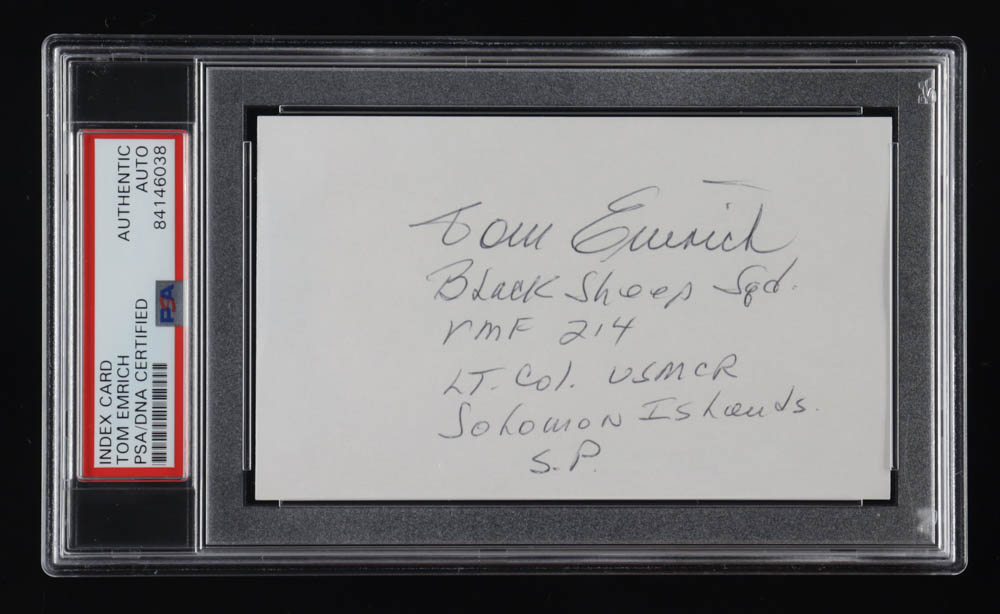 Lieutenant Colonel Tom Emrich Signed Index Card with Extensive Inscription (PSA)