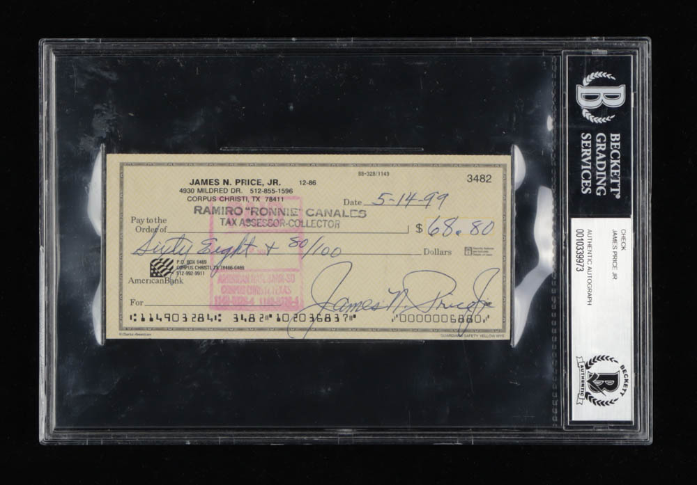 Captain James N. Price Jr. Signed 1999 Personal Bank Check (PSA)
