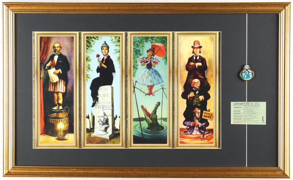 Walt Disneyland "The Haunted Mansion" Custom Framed Print Display with Vintage Ticket & Ride Pin