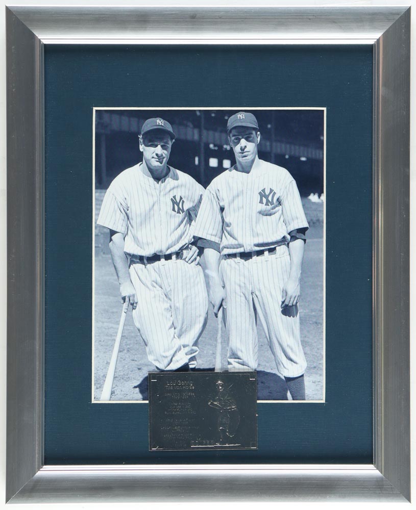 Joe DiMaggio & Lou Gehrig Custom Framed Print Display with Silver Card