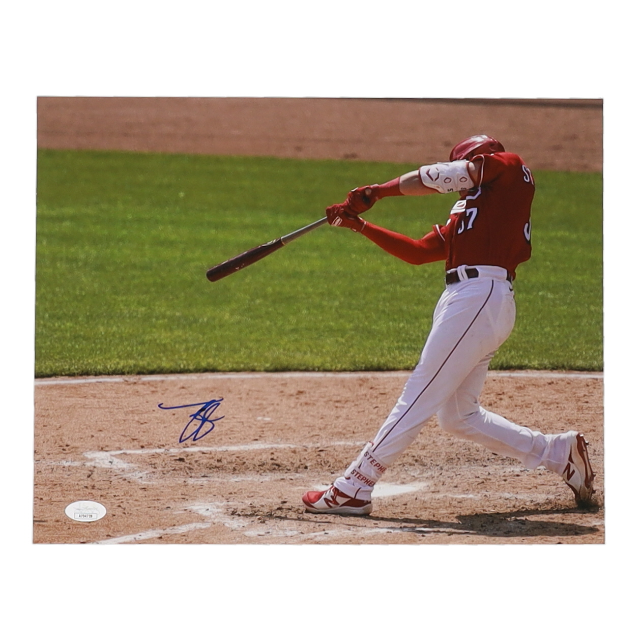 Photo measures 11" x 14" in size and has been hand-signed by Tyler Stephenson (Cincinnati Reds).