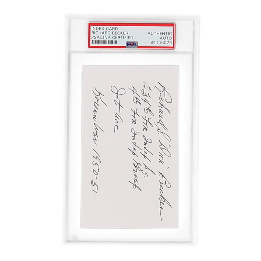 Richard "Dick" Becker Signed Index Card with Service Record Inscription (PSA)