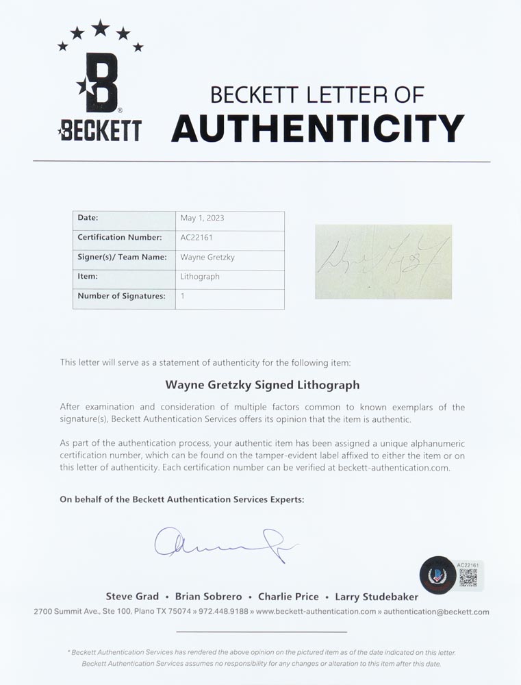 The autograph includes an official Beckett Authentication Services hologram and matching LOA for authenticity purposes.