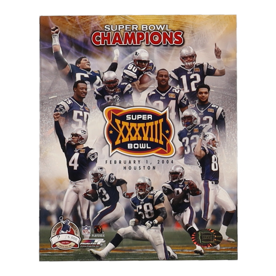 Photo measures 8" x 10" in size and features the New England Patriots Super Bowl XXXVIII. Photo is limited edition and numbered #9/5000. Please note, the photo is unsigned.