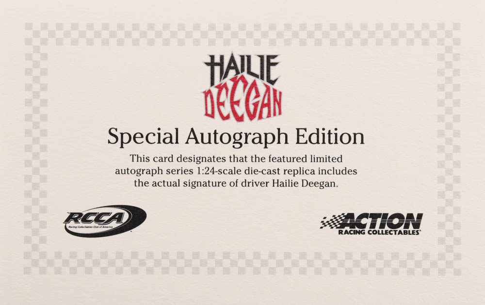 Premium die-cast car | truck hand-signed on the windshield by Hailie Deegan. This truck was raced at Richmond in 2022 by Deegan.