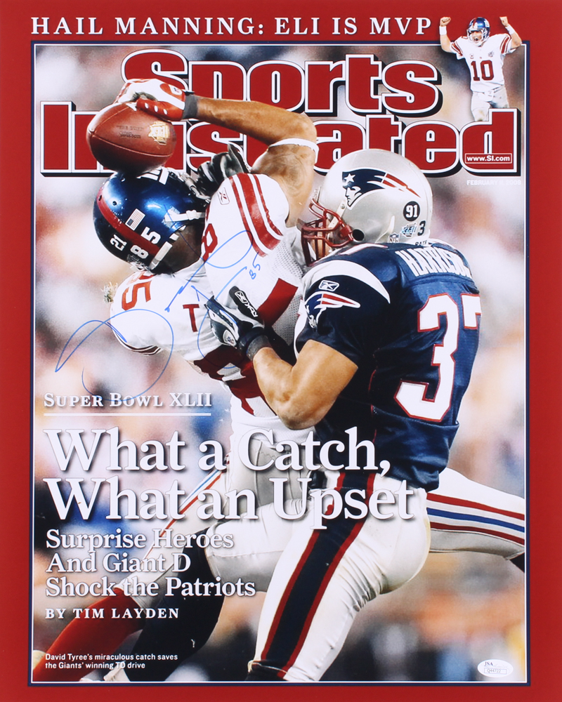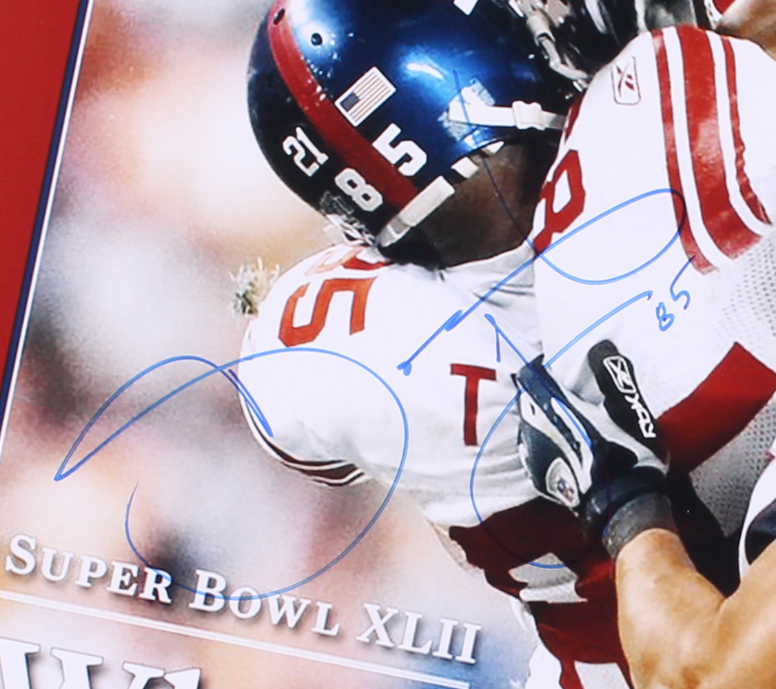 Photo measures 16" x 20" in size and has been hand-signed in blue felt-tip pen by David Tyree (Giants, Ravens).