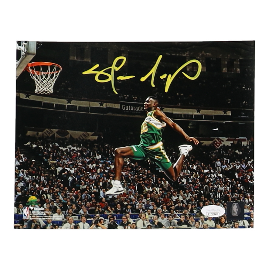 Photo measures 8" x 10" in size. Hand-signed by Shawn Kemp (Seattle SuperSonics).