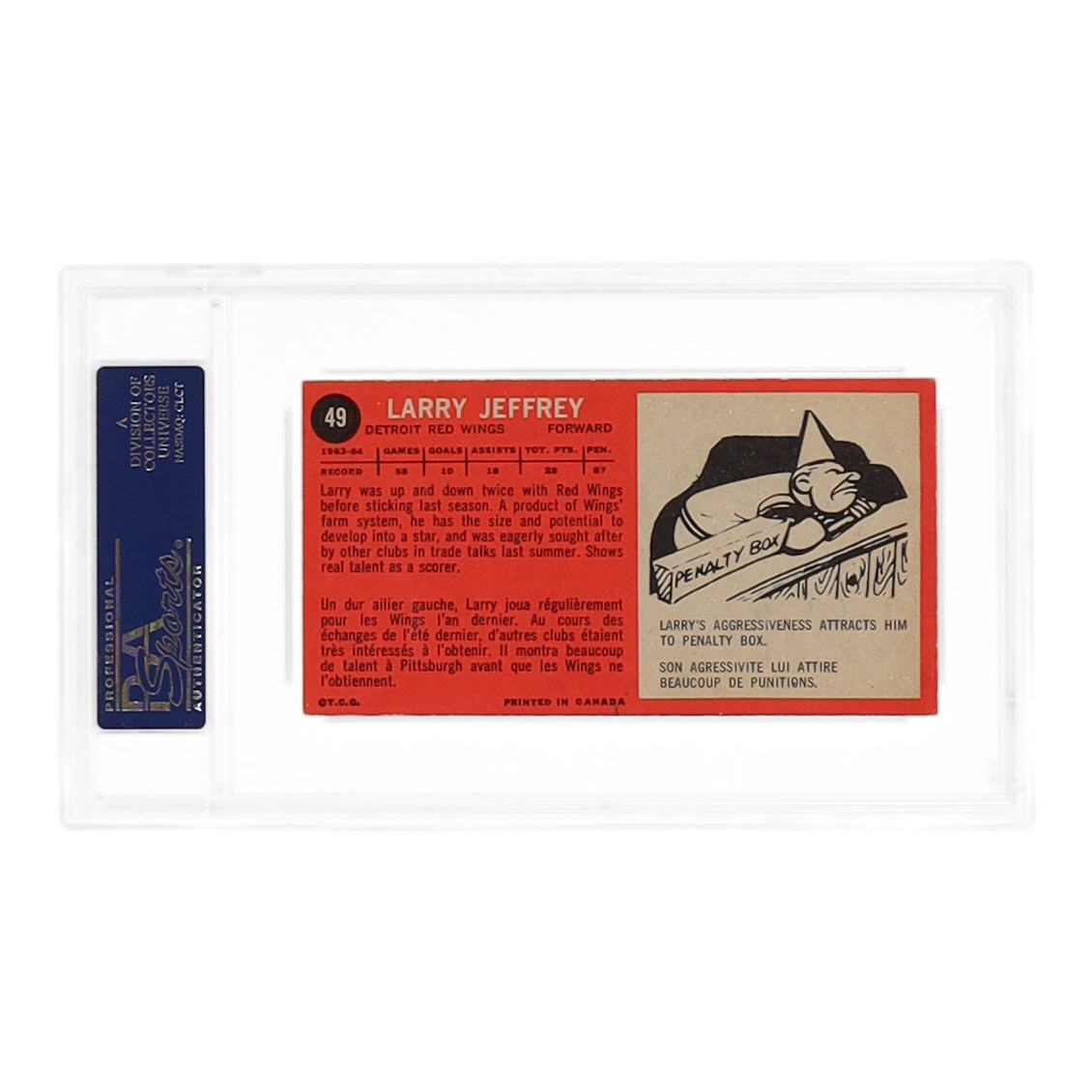 Card has been hand-signed by Larry Jeffrey (D. 2022, Detroit Red Wings). Please see scans for more details regarding the condition of the card.