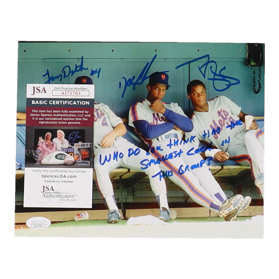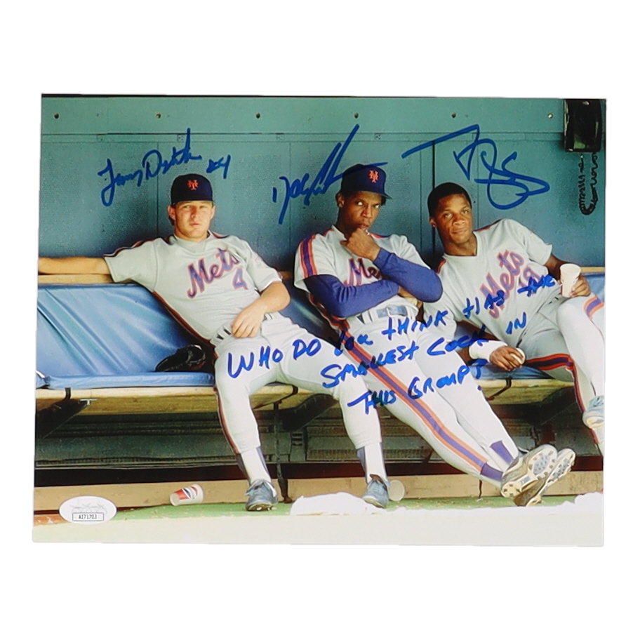 Dwight Gooden, Darryl Strawberry & Lenny Dykstra Signed Mets 8x10 Photo with Extensive Inscription (JSA)
