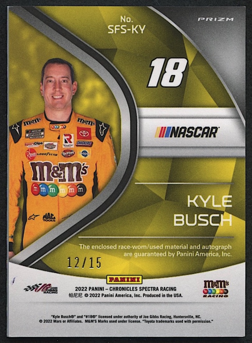 2022 Panini Chronicles Spectra Firesuit Signatures Interstellar Red #3 Kyle Busch #12/15