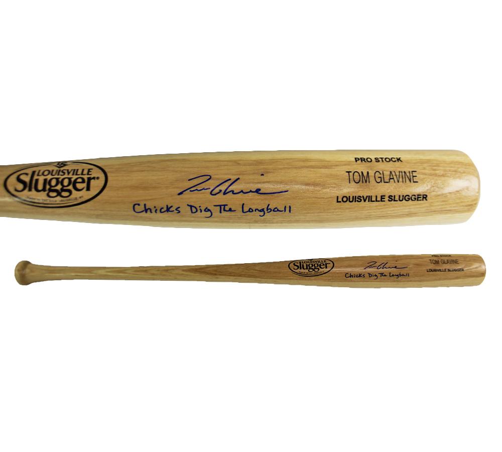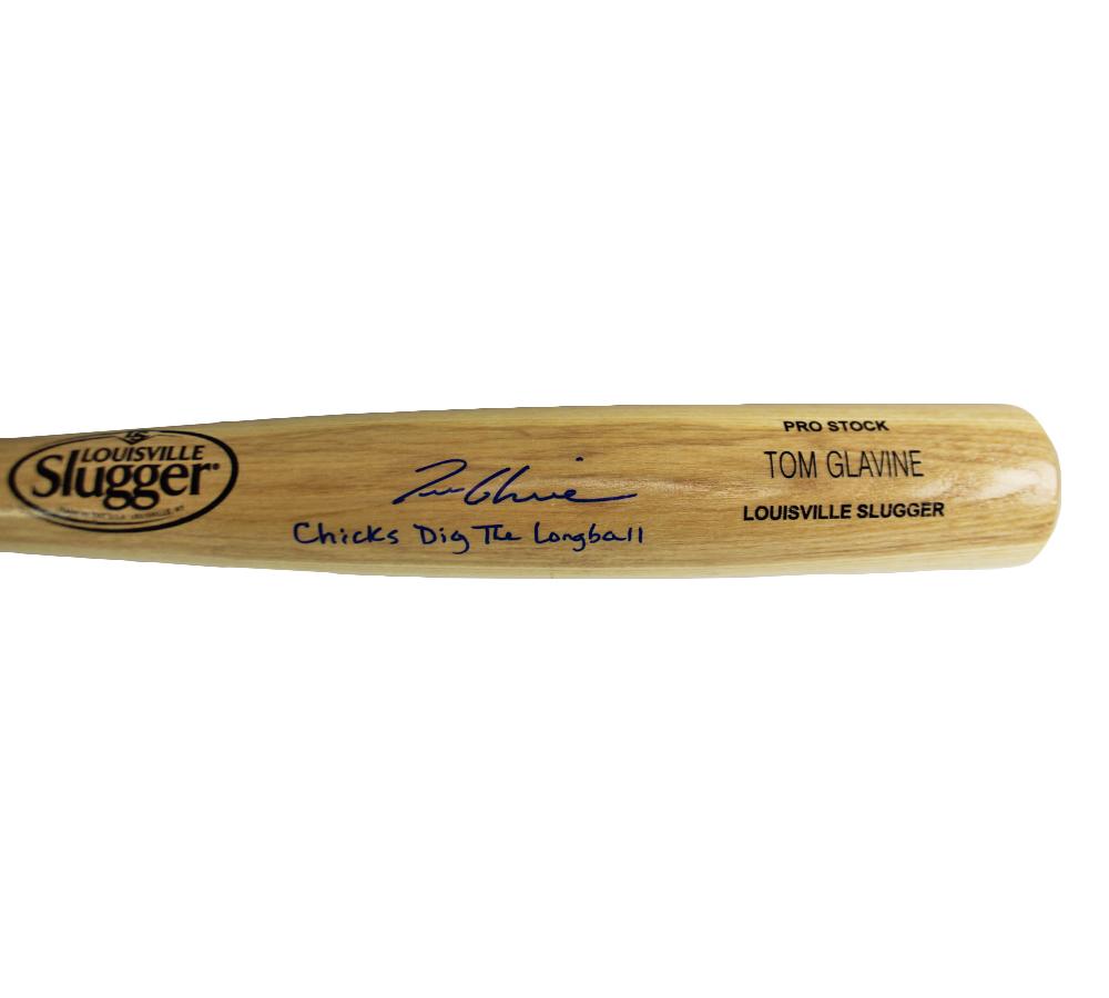 Tom Glavine Signed Baseball Bat Inscrbied "Chicks Dig the Longball" (Radtke)
