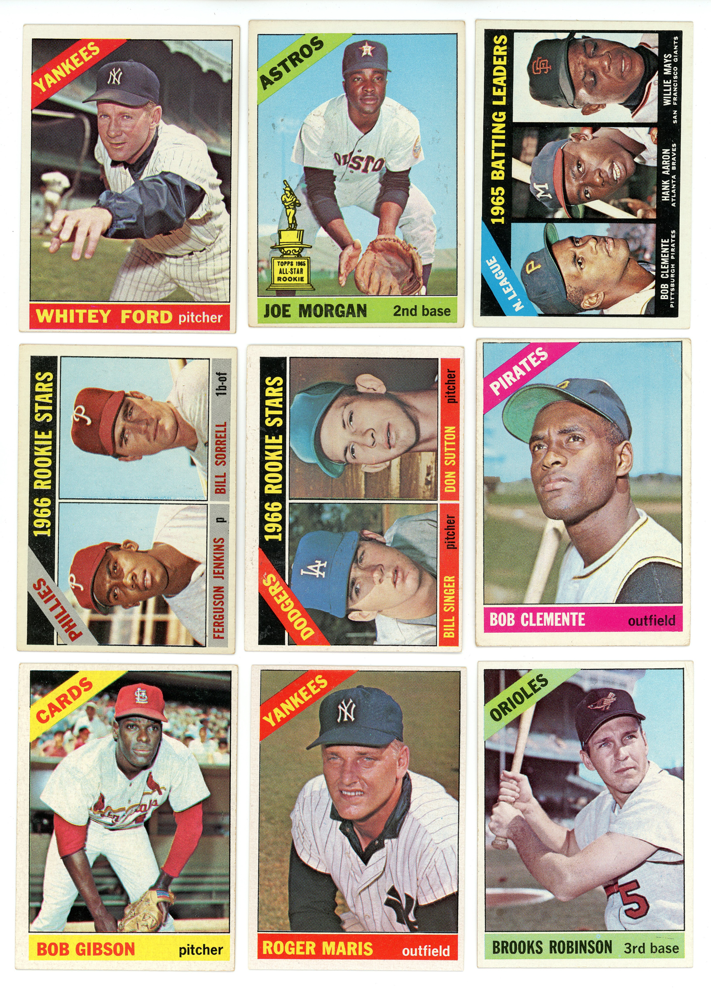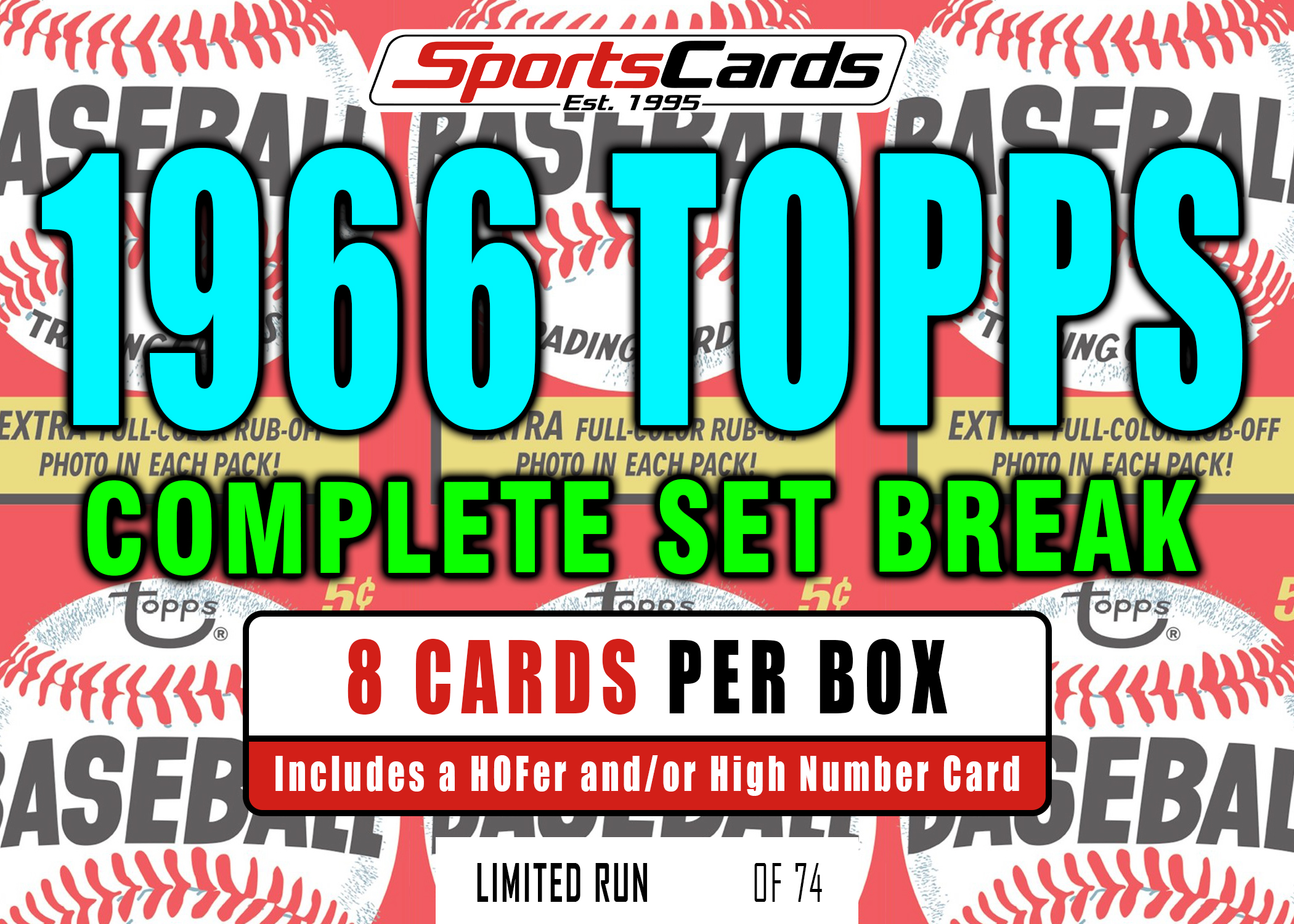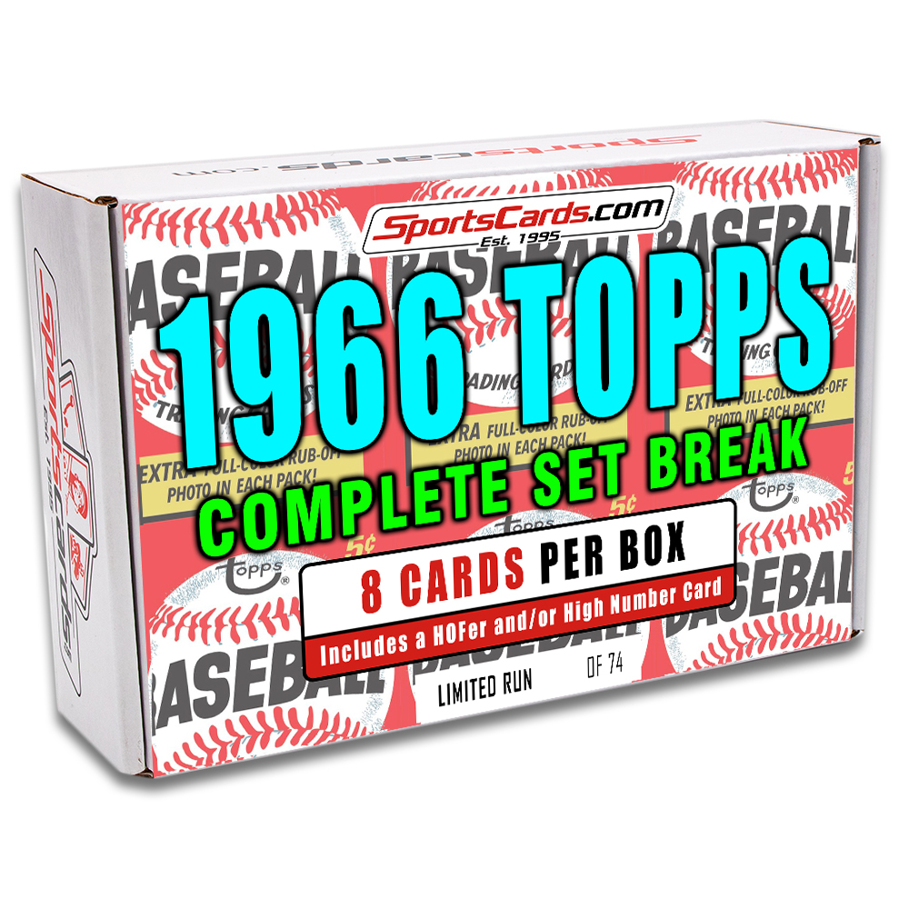 Each 1966 Topps Baseball Complete Set Break Box will have 8 Cards, including a Hall of Famer and/or rare high numbered card!
