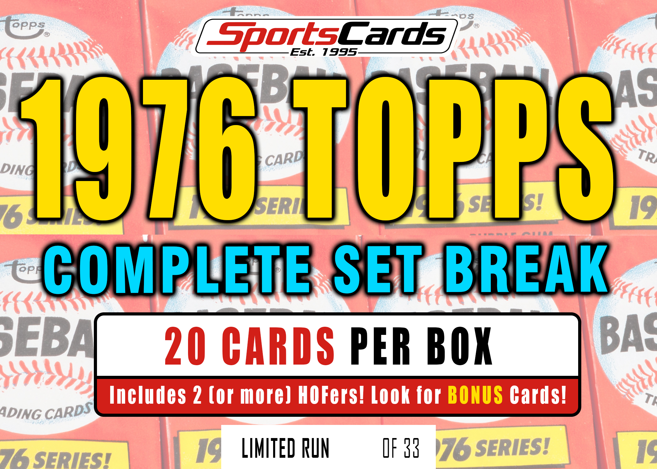 Each 1976 Topps Baseball Complete Set Break Box will have 20 Cards, including 2 or more Hall of Famers!