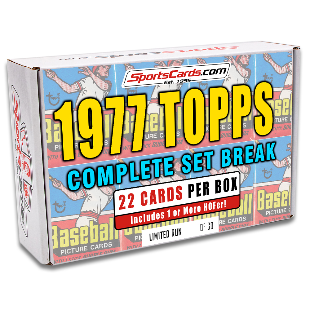 Each 1977 Topps Baseball Complete Set Break Box will have 22 Cards, including 1 or more Hall of Famer!