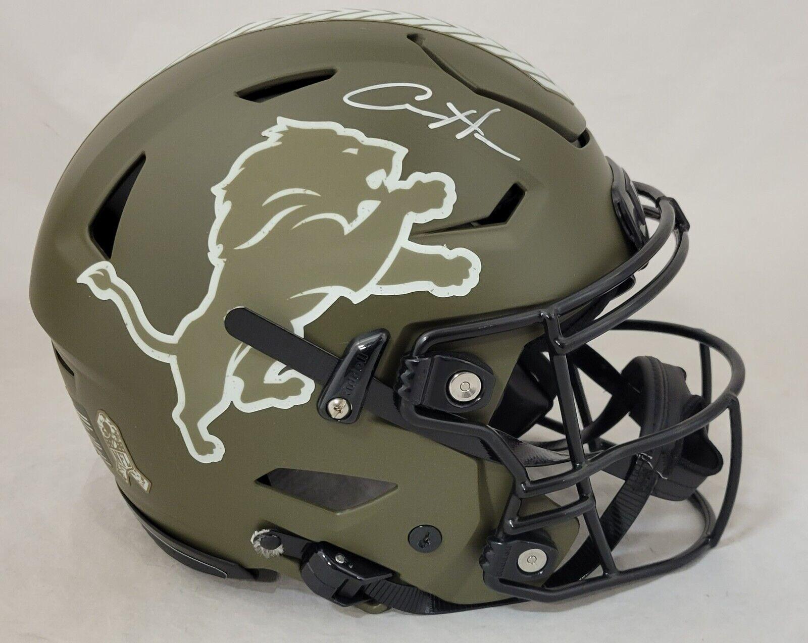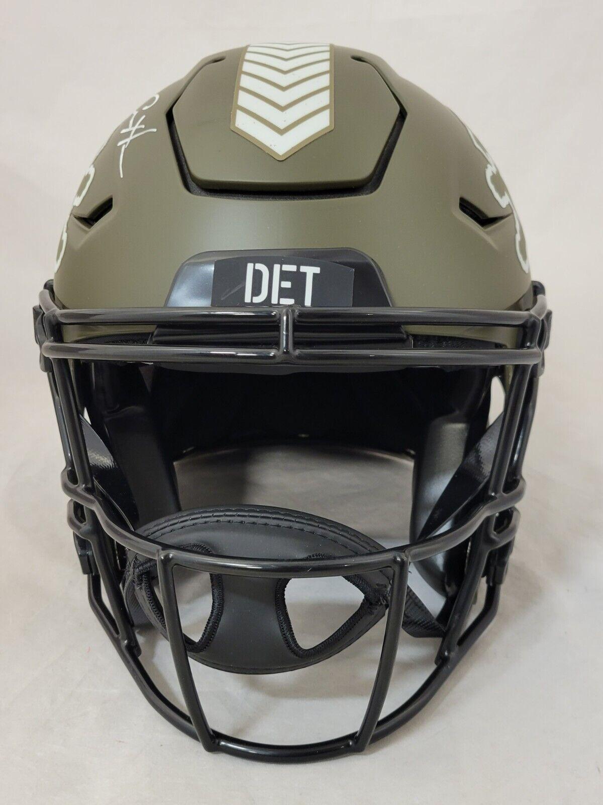 Riddell Detroit Lions Full Size Authentic Salute To Service Alternate Speedflex Helmet. Hand-signed by Aidan Hutchinson.