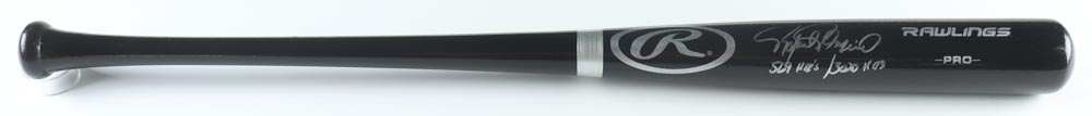 Rawlings Pro baseball bat. Hand-signed and inscribed by Rafael Palmeiro (Texas Rangers).