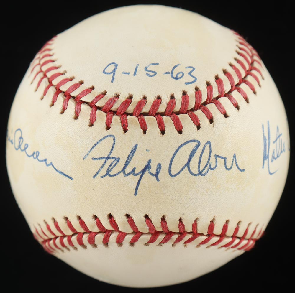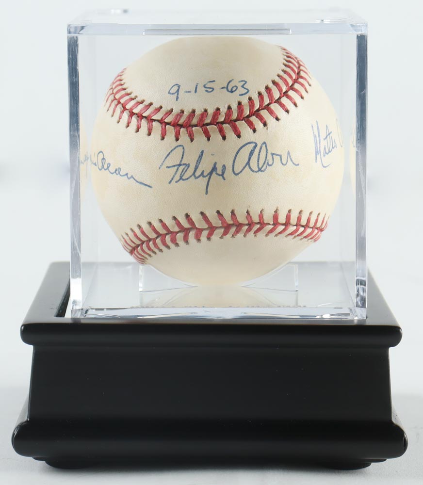 Felipe Alou, Mateo Alou & Jesus Alou Signed ONL Baseball with Display Case Inscribed "9-15-63" (PSA)