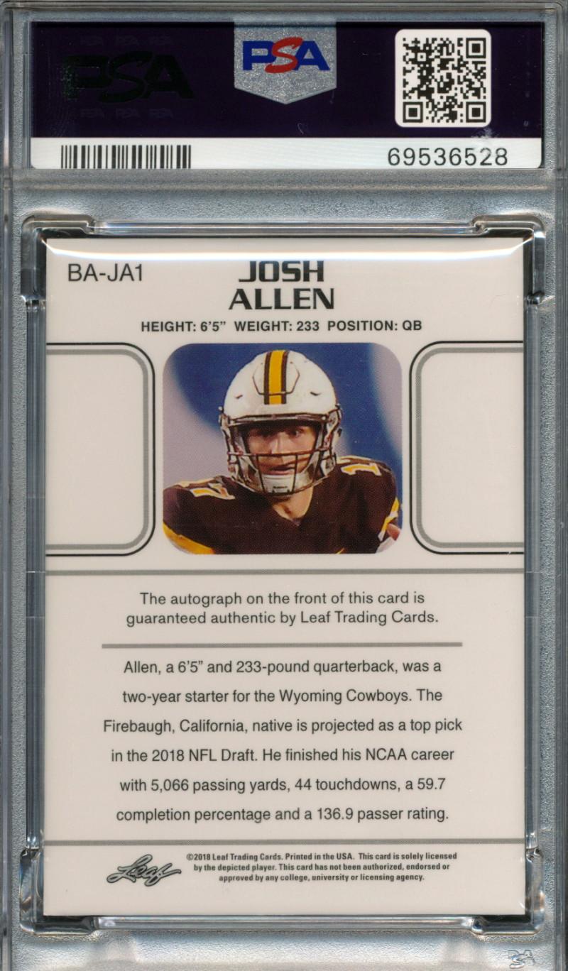 Josh Allen Signed 2018 Leaf Ultimate Draft 1990 RC (PSA 9)