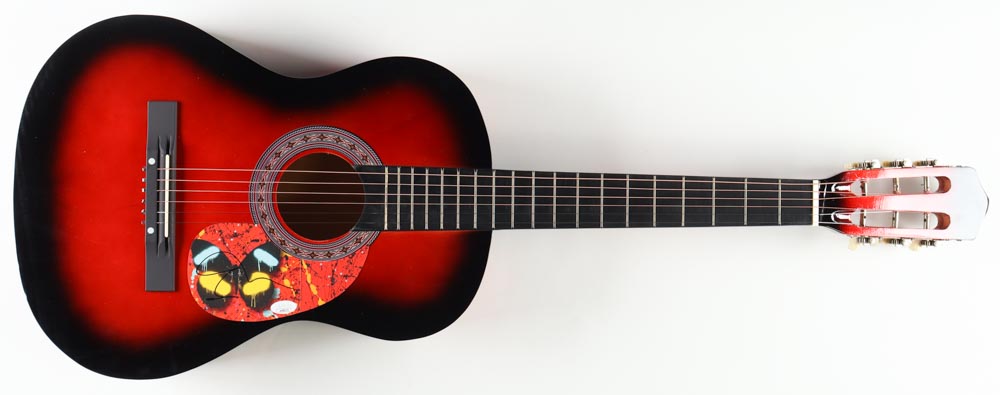 Guitar measures approximately 38" in length. Hand-signed on a CD cover that has been repurposed as a pick-guard by Ed Sheeran.