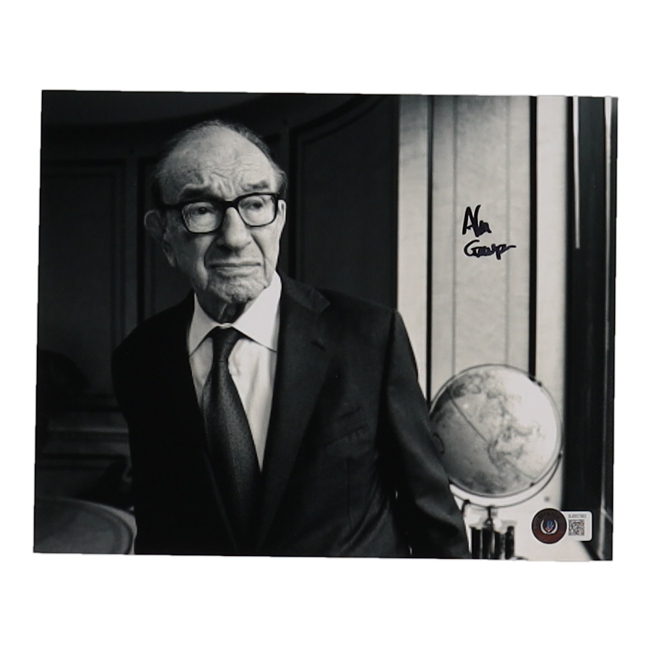 Photo measures 8" x 10" in size. Hand-signed by Alan Greenspan.