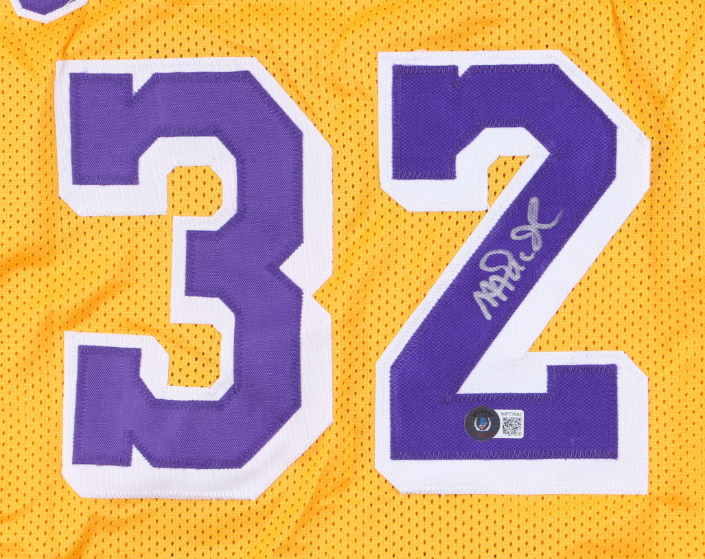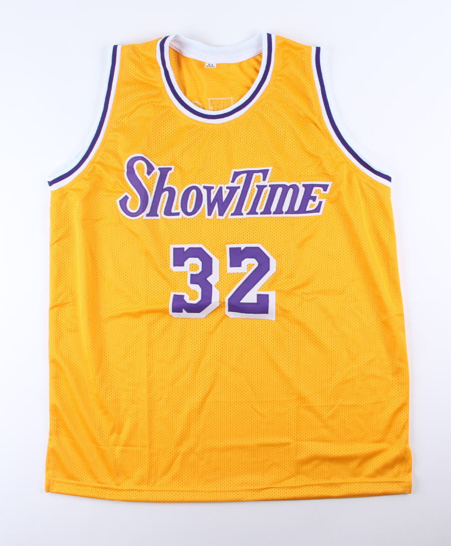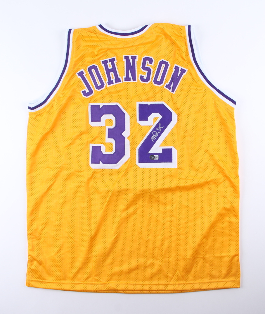 Custom jersey. Everything sewn on, size XL. Hand-signed by Magic Johnson (HOF).