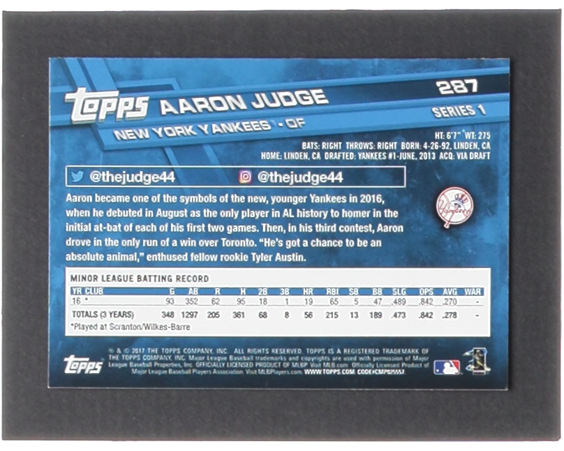 Aaron Judge 2017 Topps #287C UPD SP RC / Arms Over Railing