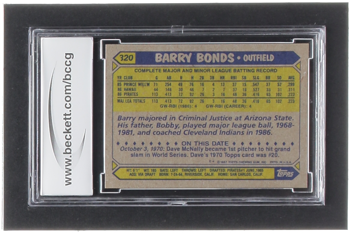 Barry Bonds 1987 Topps #320 RC (BCCG 10)