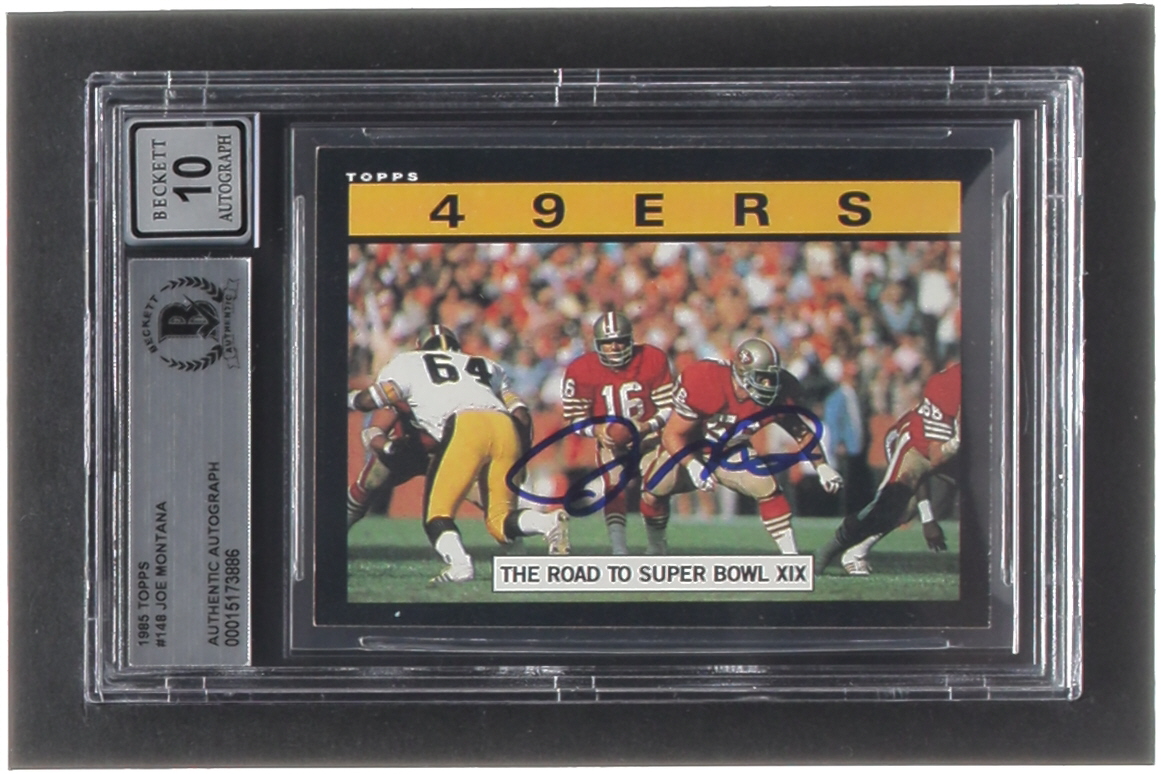 Joe Montana Signed 1985 Topps #148 San Francisco 49ers TL The Road To Super Bowl XIX (BGS | Autograph Graded Beckett BGS 10)
