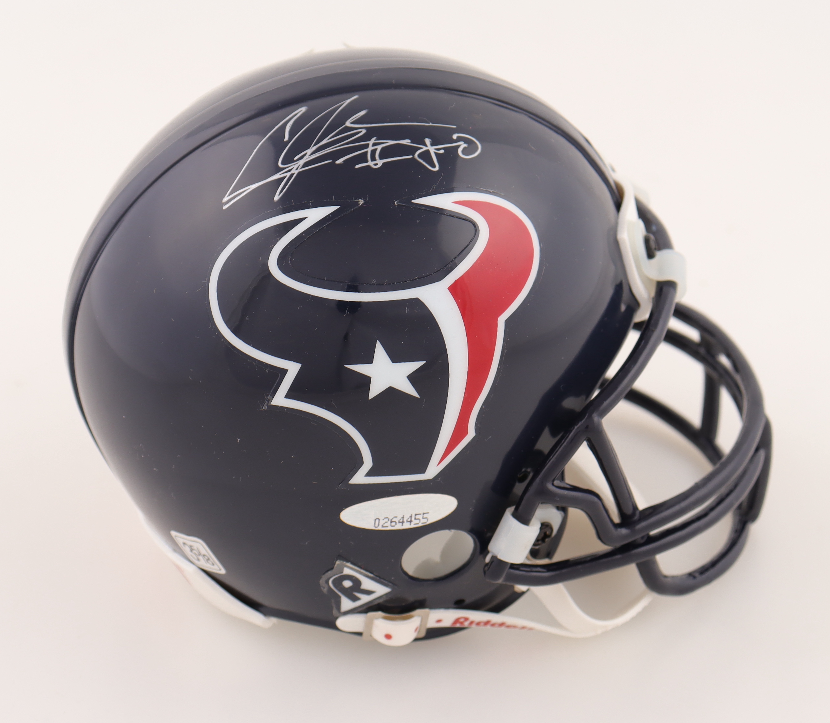 Riddell Houston Texans mini helmet has been hand-signed by Andre Johnson.