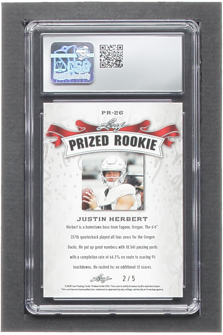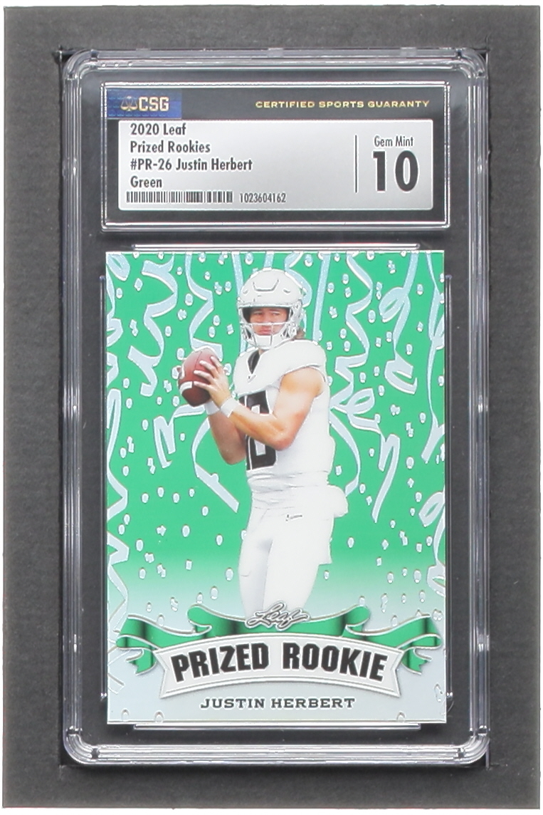 Justin Herbert 2020 Leaf Metal Special Release Prized Rookie Rainbow Green #PR2026 #2/5 RC (CSG 10)