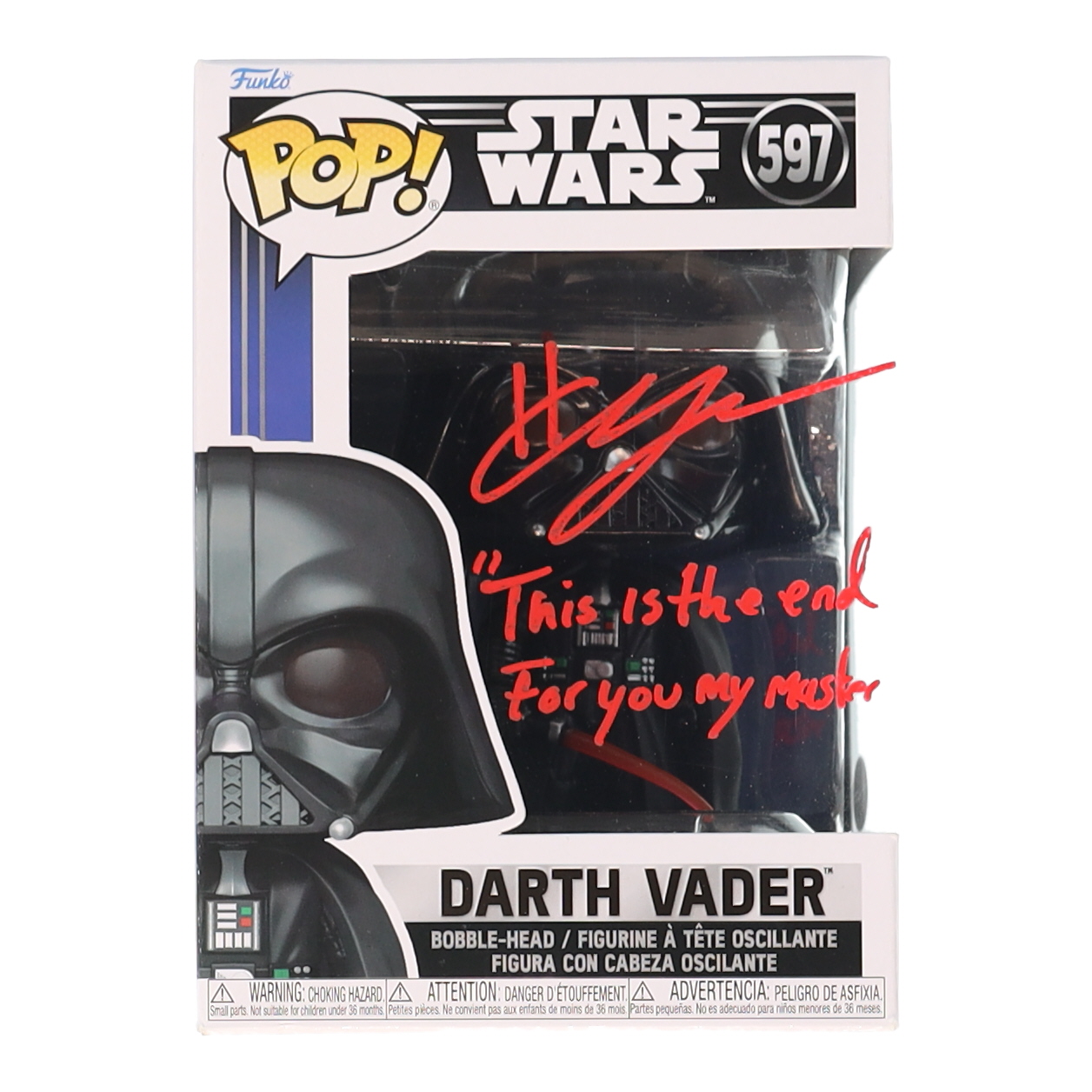 Hayden Christensen Signed "Star Wars" #597 Darth Vader Funko Pop! Vinyl Figure Inscribed "This Is The End For You My Master" (JSA)