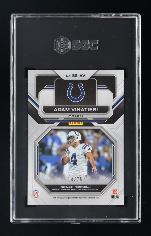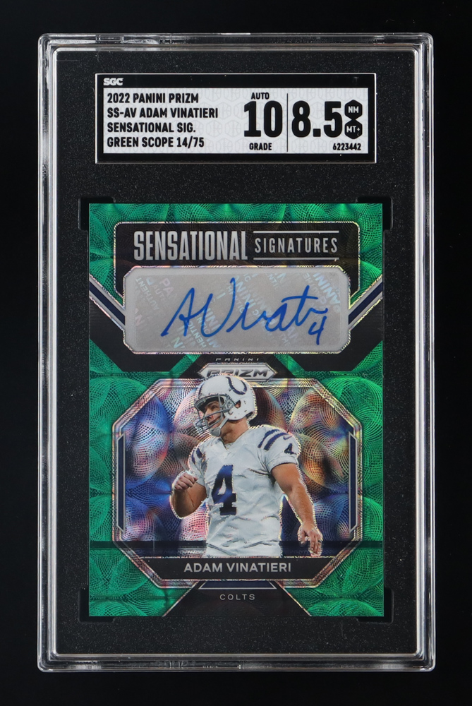 Adam Vinatieri 2022 Panini Prizm Sensational Signatures Prizms Green Scope #2 #14/75 (SGC 8.5 | Autograph Graded 10)
