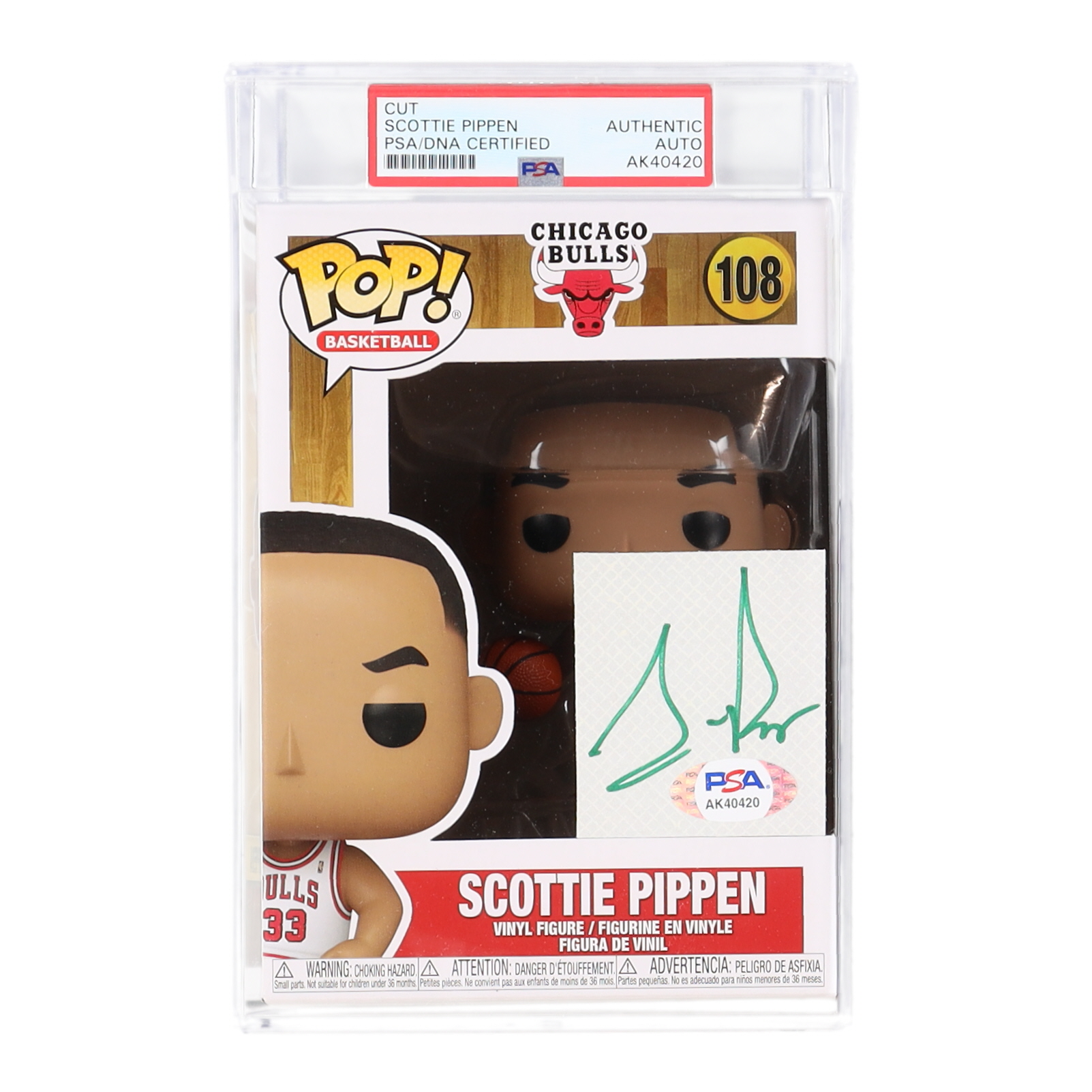 Scottie Pippen Signed Cut with Chicago Bulls #108 "Scottie Pippen" Funko Pop! Vinyl Figure (PSA)