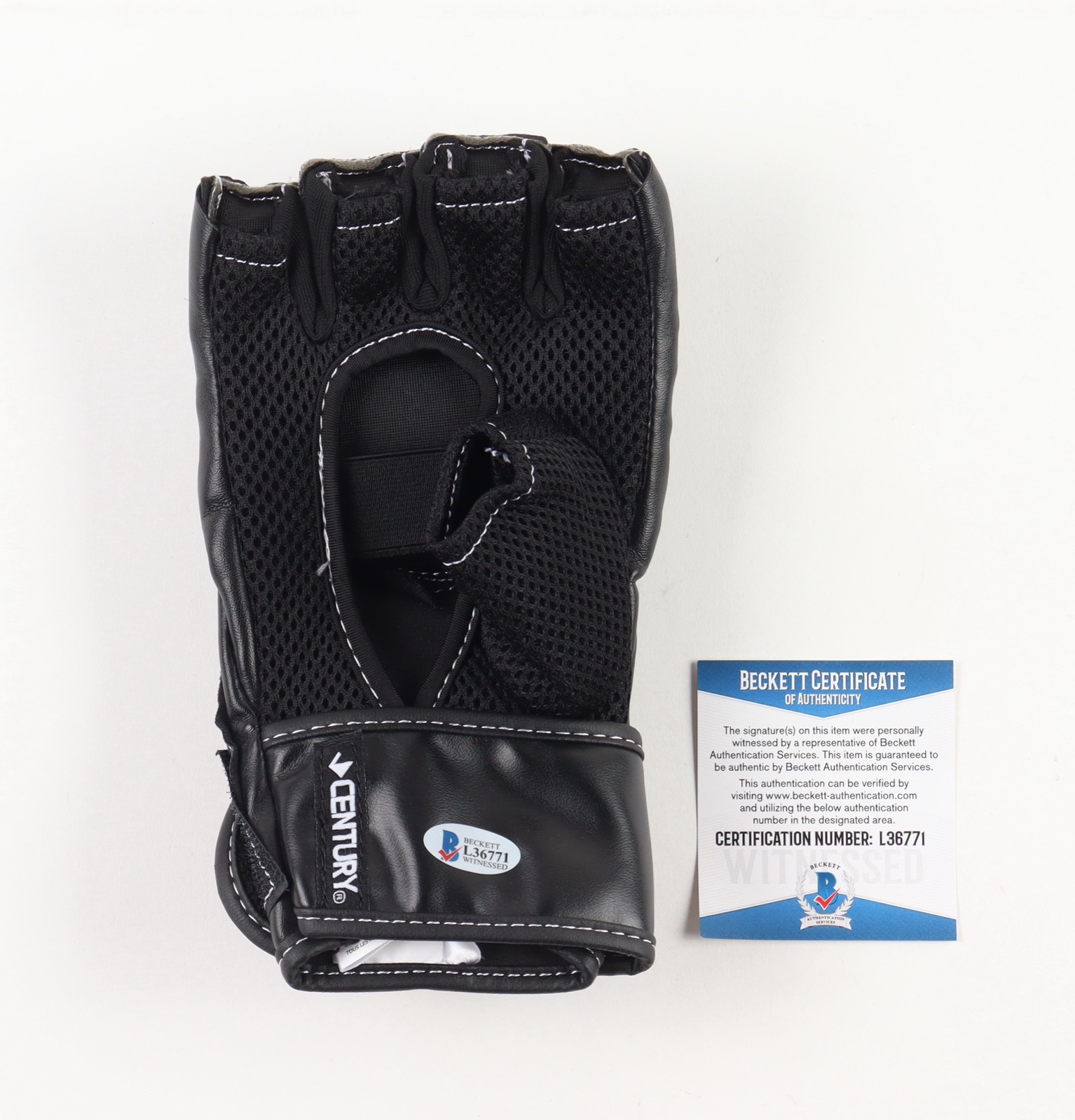 Century fight glove has been hand-signed by Chuck Liddell (HOF).