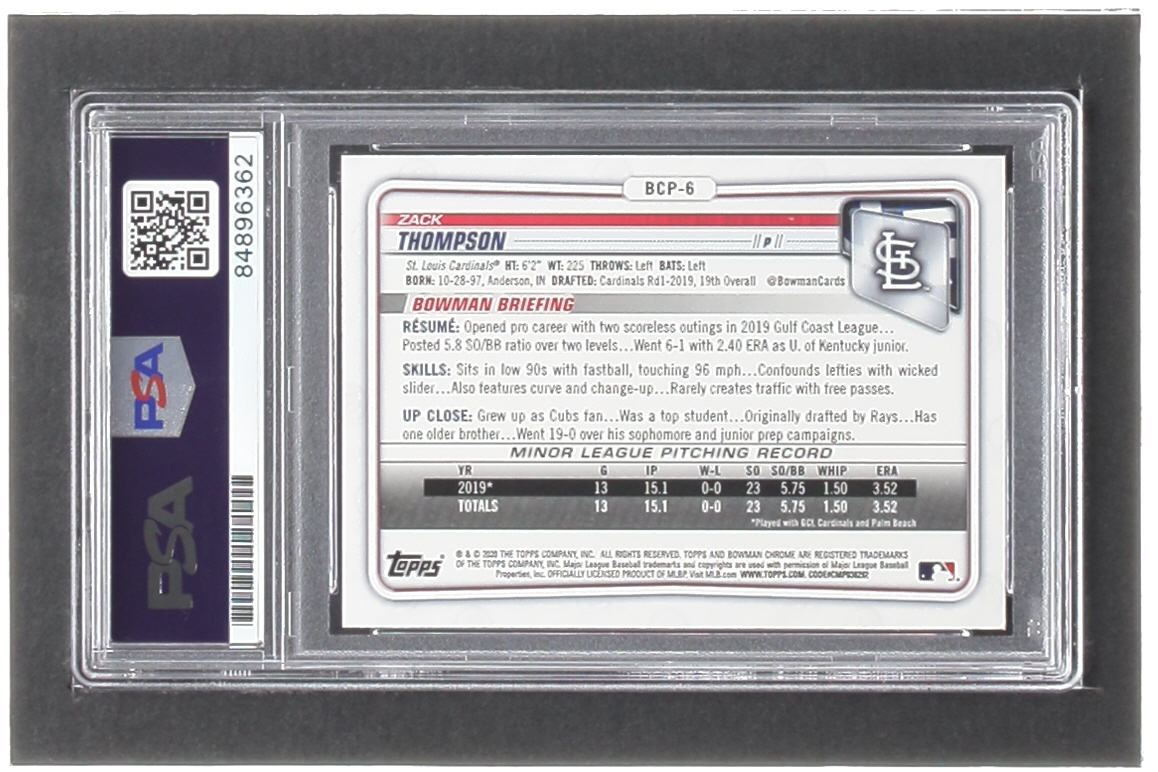 Zack Thompson Signed 2020 Bowman Chrome Prospects #BCP6 (PSA)