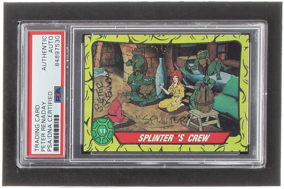 Peter Renaday Signed Splinter's Crew 1989 Topps Teenage Mutant Ninja Turtles #11 Inscribed "Splinter" (PSA)