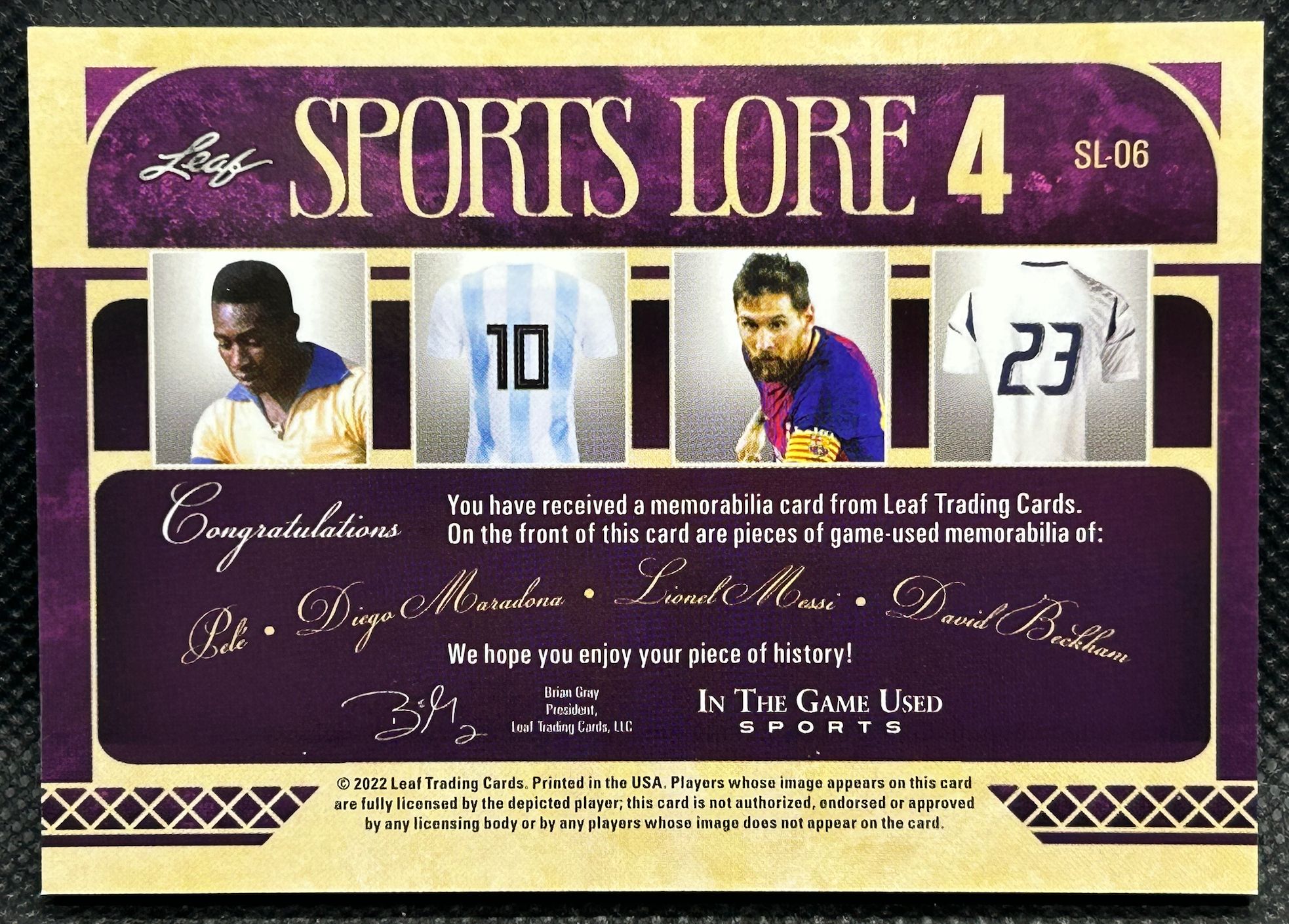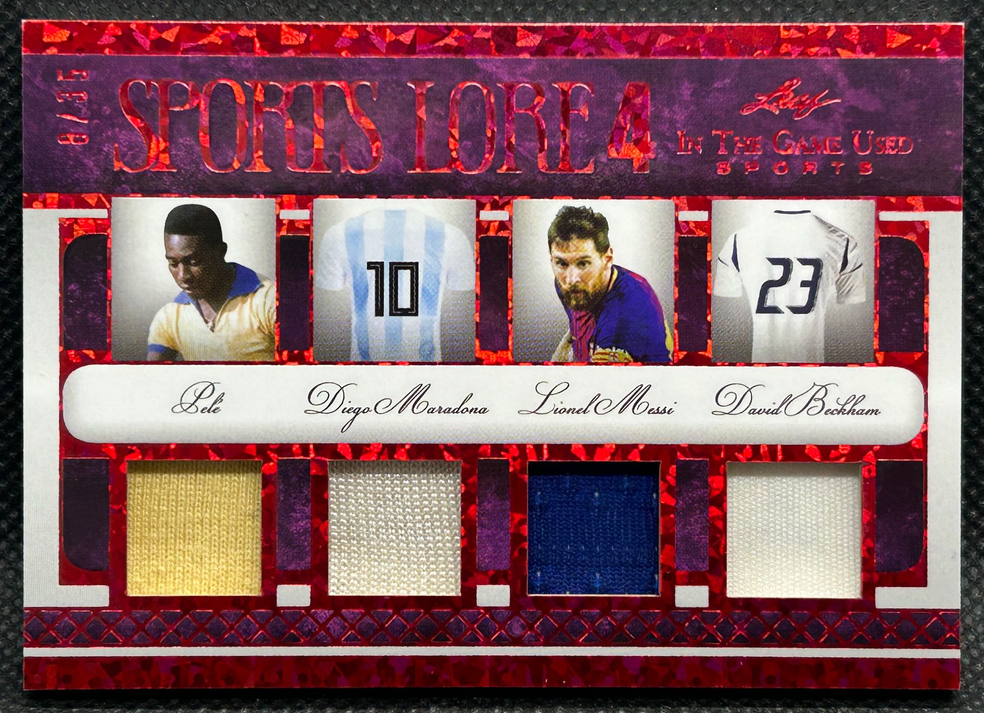 Pele / Diego Maradona / Lionel Messi / David Beckham 2022 ITG Used Sports Sports Lore 4 Materials Red Pattern #SL406