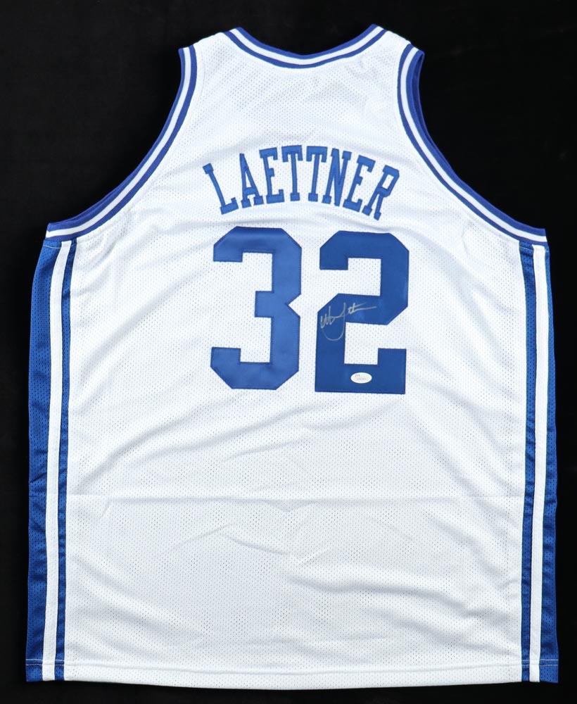 Jersey is size XL, everything is sewn on. Hand-signed by Christian Laettner.