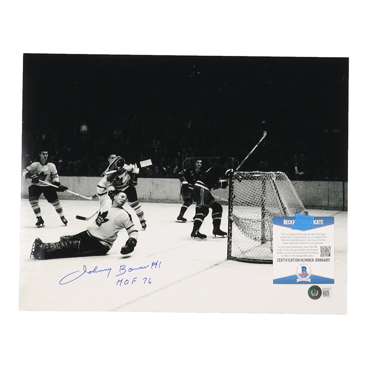 Johnny Bower Signed Maple Leafs 11x14 Photo Inscribed "HOF 76" (Beckett)