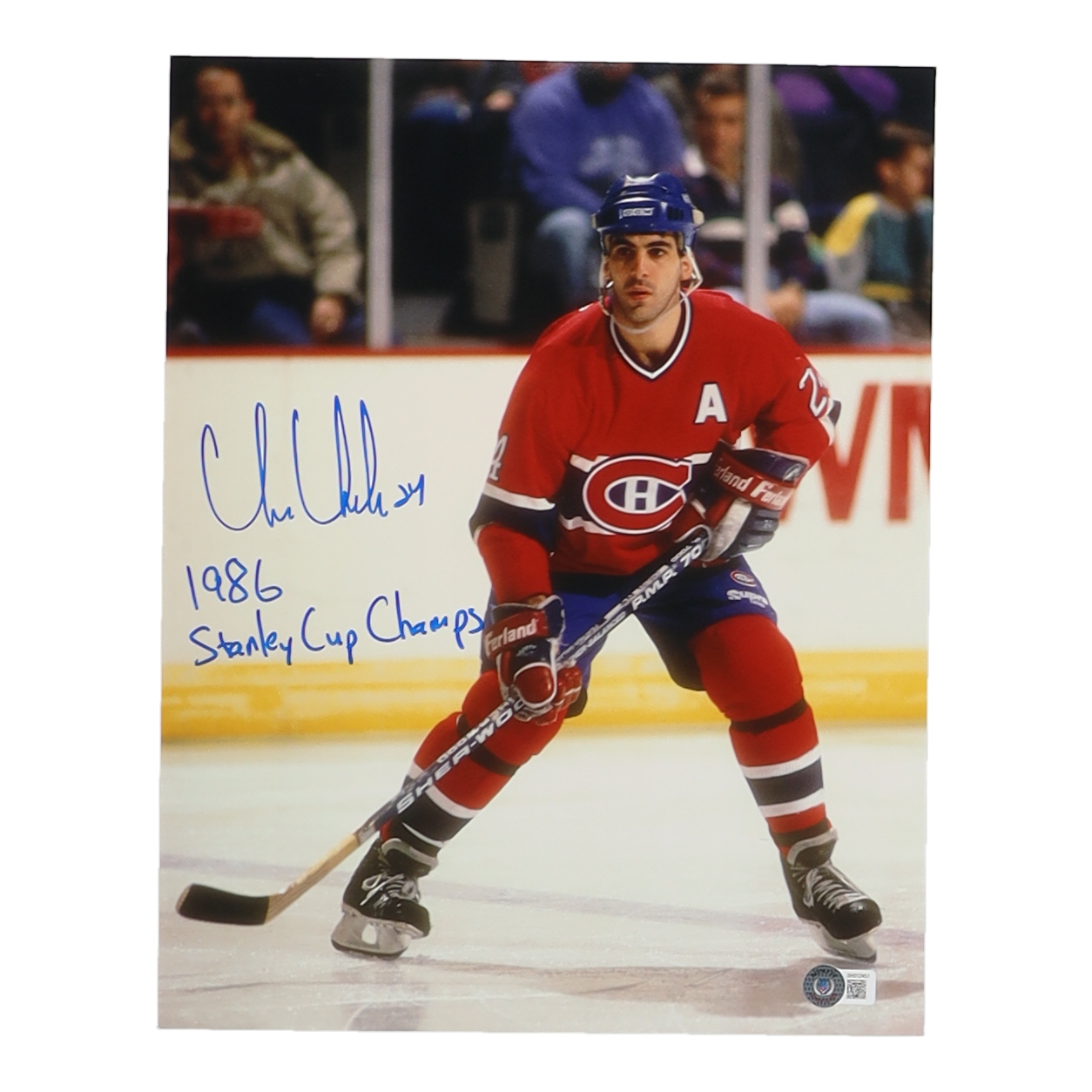 Chris Chelios Signed Canadiens 11x14 Photo Inscribed "1986 Stanley Cup Champs" (Beckett)