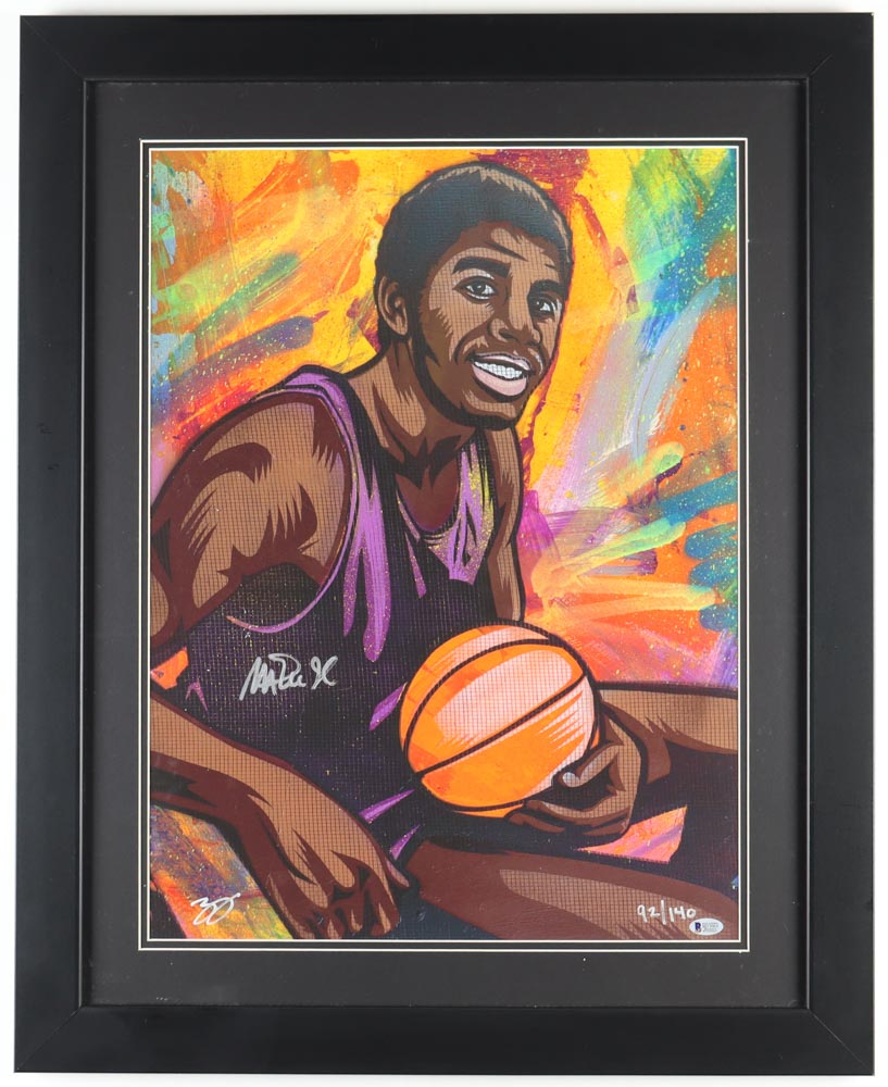 Custom frame measures 26" x 32" in size and features a lithograph that has been hand-signed by Magic Johnson (Los Angeles Lakers, HOF).