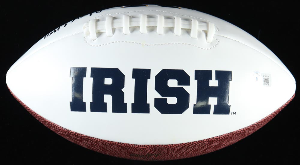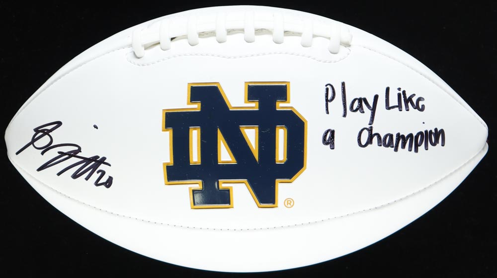 Benjamin Morrison Signed Notre Dame Fighting Irish Logo Football Inscribed "Play Like A Champion" (Beckett)