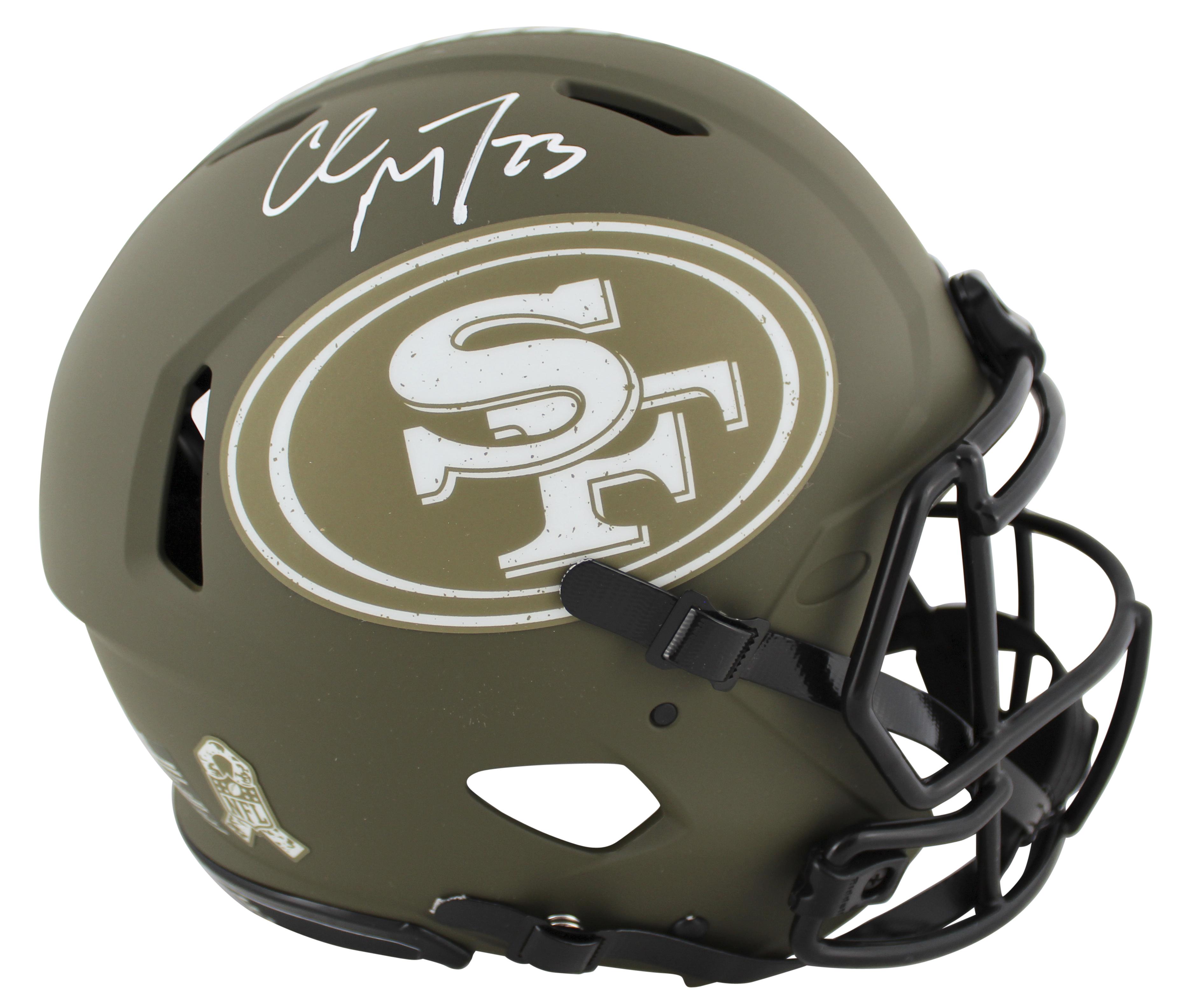 Christian McCaffrey Signed 49ers Full Size Authentic On Field Salute To Service Alternate Speed Helmet (Beckett)